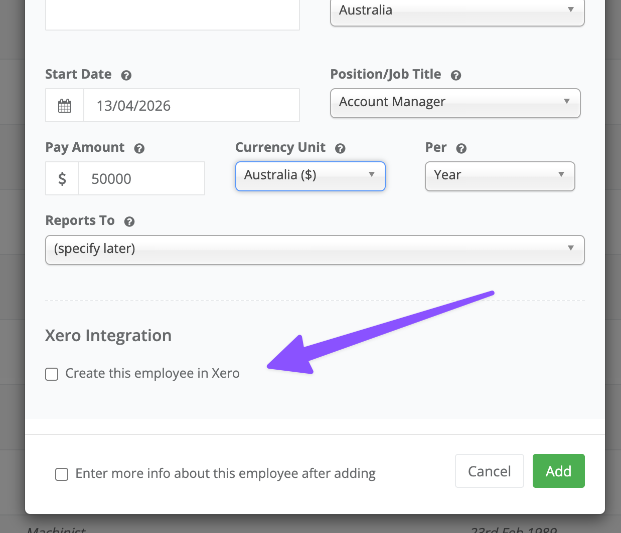 You can choose whether to add the employee to Xero at the same time.
