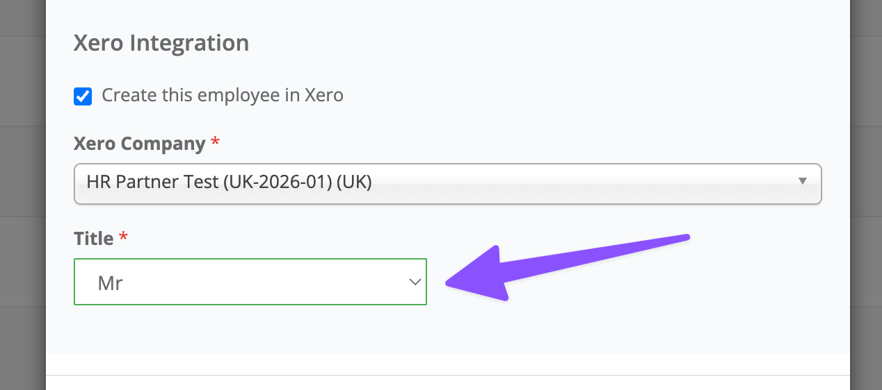 Xero requires an employee title (honorific), which is not stored in HR Partner. You will be prompted to select a title before the employee can be synced.