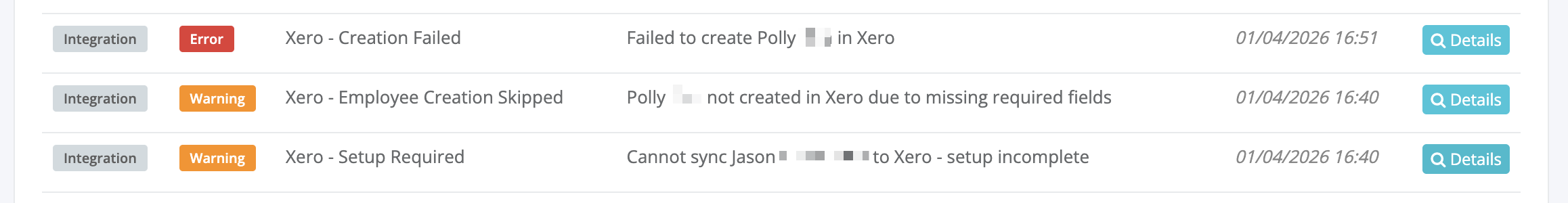 If you don’t see employee data being created or updated in Xero: