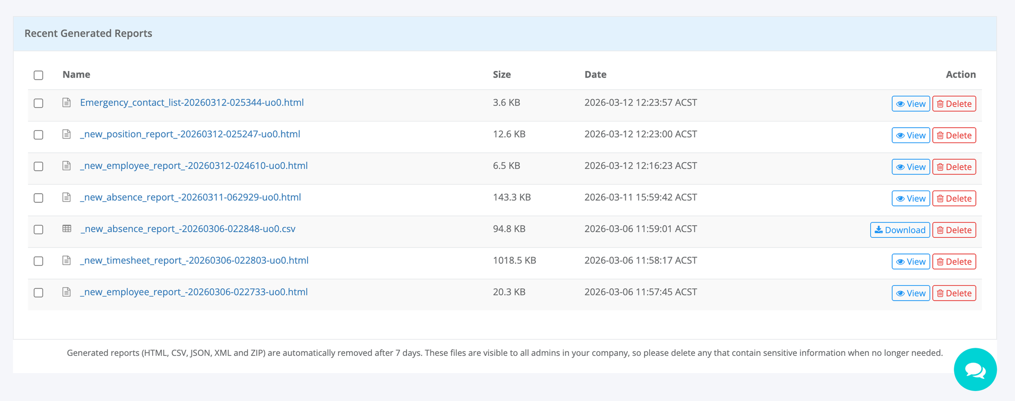 Reports remain available in this section for 7 days before being automatically removed. You can also delete them manually at any time.8