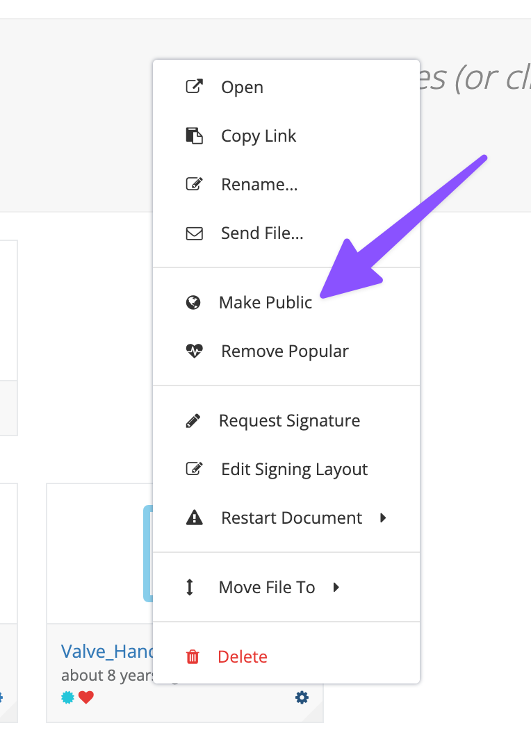 You can use this menu option to toggle the file between 'public' and 'private'.